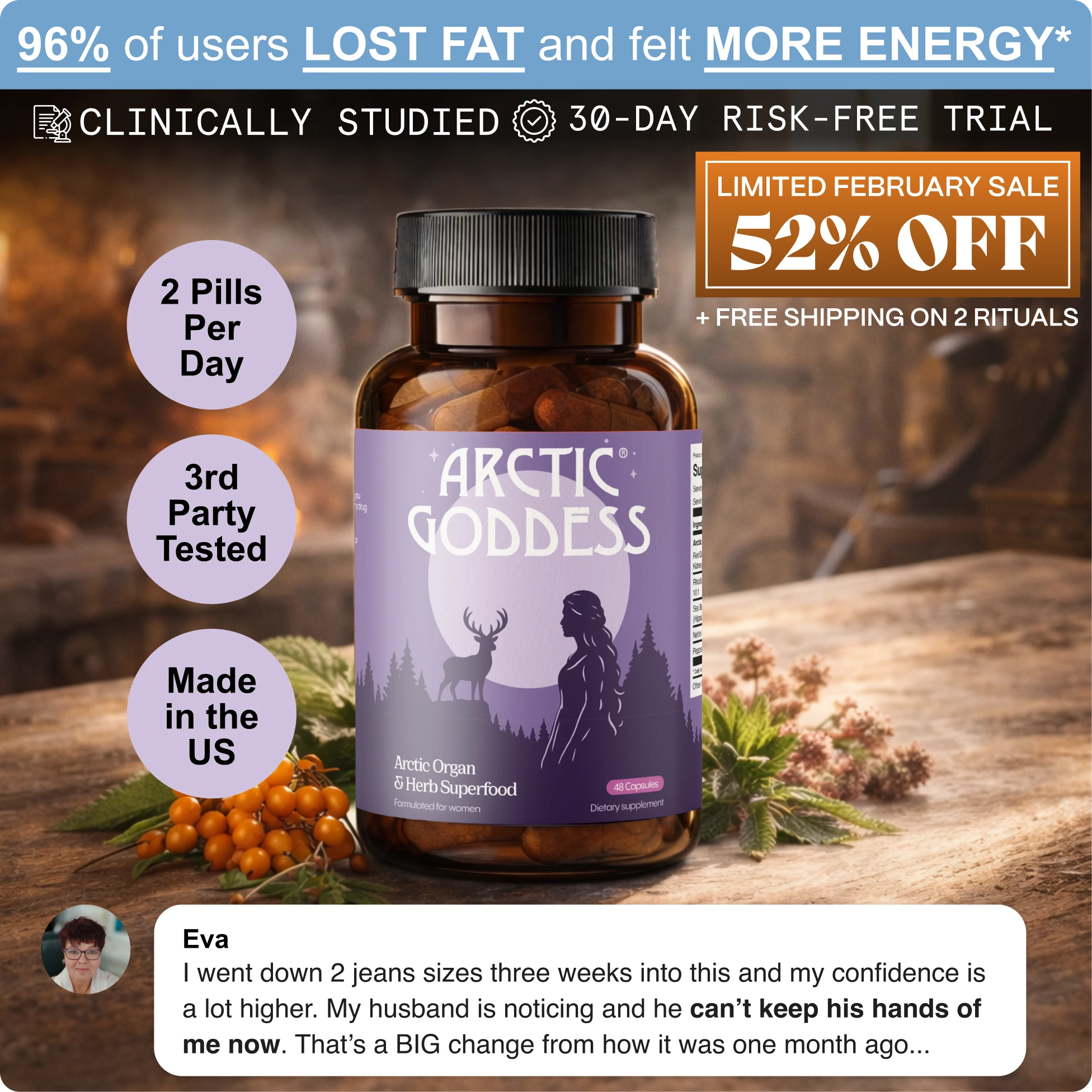 Arctic Goddess has transformed thousands of lives just like yours. If you thought your best years were behind you. Your energy is gone, your drive is low, and intimacy with your partner has faded. And you feel like a shadow of who you used to be. This will transform your life to. And because Arctic Goddess is so confident, they are giving you a 100% money-back guarantee for a limited time if you buy now.*